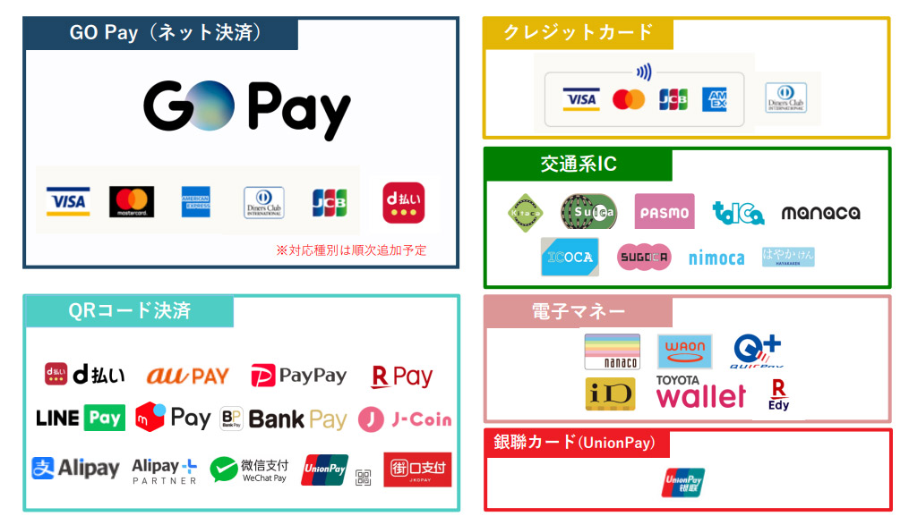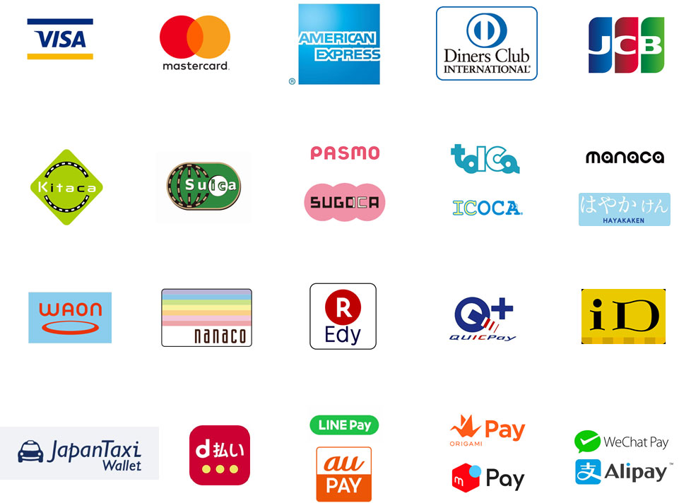 クレジットカードは勿論のこと、キタカ等の交通系IC、nanaco・楽天Edy等の電子マネーに加え、