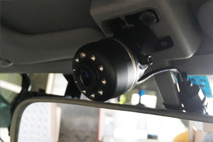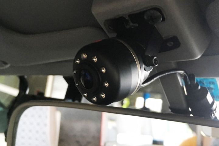 当社のドライブレコーダーは、前方と同時に車内の様子も音声とともに常時記録致します。万が一、事故が発生した時の有力な証拠となるとともに、車内犯罪が激減いたしました。